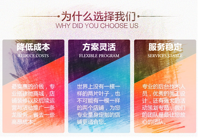 我们不是一家只负责搭建微商城平台的公司,我们认为,微商城搭建只是移动电商的第一步,微商城平台后期活动策划和落地执行才是关乎移动电商能否真正落地的关键!我们更加注重实战及案例分享,注重微营销活动策划推广、粉丝增加、移动电商落地活动执行等服务!