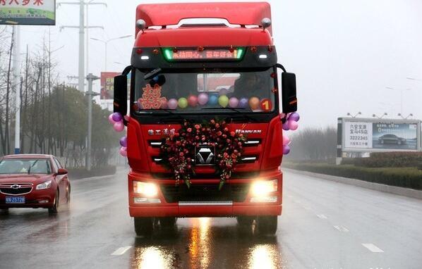 “作为一位卡车人,用卡车来做婚车比用常见的豪车当婚车意义更大,这是展示我们卡车人浪漫的最好方式。自己的好兄弟用漢风这样的一批‘豪车’来帮我举行这样别出心裁的婚礼,将更加有意义,更加难忘”,帅气的新郎胡照杰如是说。