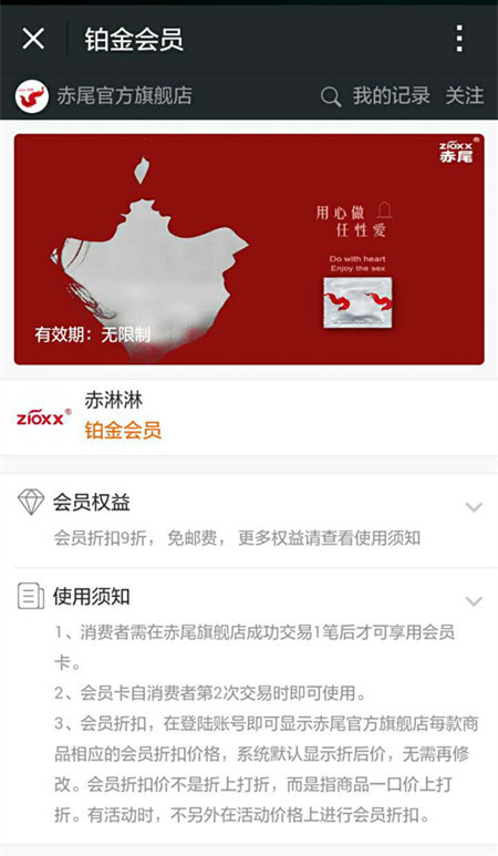 为了满足广大的消费需求,让赤尾粉粉们更享受赤尾的福利,特推出赤尾会员卡,仅限于赤尾微信服务号官方旗舰店使用的一种电子消费卡。亲们可以点击微信右下端菜单栏“赤尾会员”——“我的会员卡”进行查询。