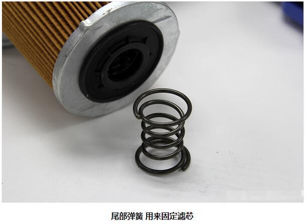 从上图不难看出,用来固定滤芯,也就是将整个滤芯顶在进/出油口处的弹簧做工也是非常扎实的,在结构和强度上都非常可靠。而滤芯与进/出油口之间通过一个较厚的密封橡胶垫来进行固定。