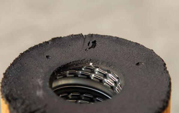 既然暴力拆解无效,那么我们就换一种方法,利用火烤来给这层厚实的密封胶升温,让其直接软化,这样就可以轻易将滤纸取出。需要说明的是,火烤的温度要远高于机油在滤清器里的温度,所以使用火烤会直接将这层密封胶的结构破坏掉,无需太大力量就可以将其和顶盖进行分离。