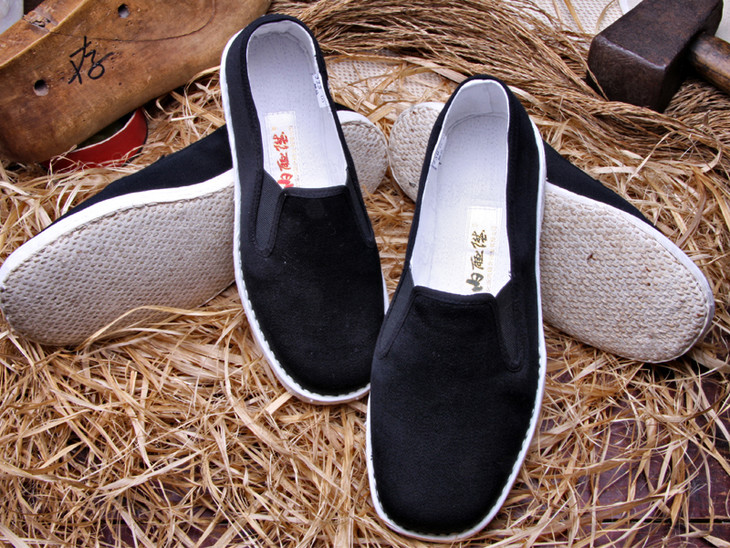 手工千层底春秋礼巾舌边布鞋,采用传统正绱工艺,穿着舒适大方,鞋面采用礼服呢布面,鞋里为棉布,鞋底为纯布底,穿着轻便舒适。