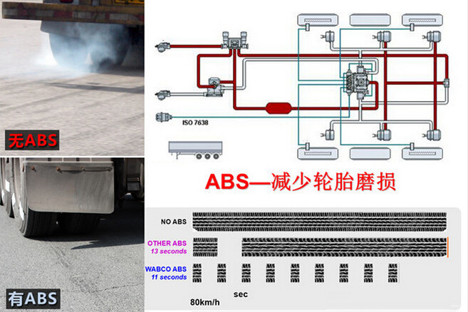 目前国内大部分挂车都还在用最原始的气压控制继动阀,这种制动系统的性能非常不稳定,很容易出现轮胎抱死、或者制动力不足的现象,除了轮胎损耗大,还非常影响安全,挂车ABS系统的应用可以从根本上解决这种问题,让您的制动随心所欲。