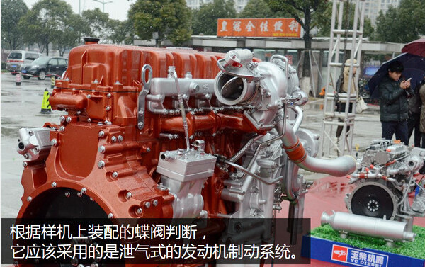 玉柴6K13配置有皆可博的发动机制动系统,可以达到25千瓦每升的制动功率,但是从亮相的样机上带有排气蝶阀来看,我个人猜测这款发动机应该没有采用时下流行的压缩释放式发动机制动,而应该是泄气式的制动系统,不过它究竟采用何种技术路线的发动机制动目前还只是猜测,有待确认。
