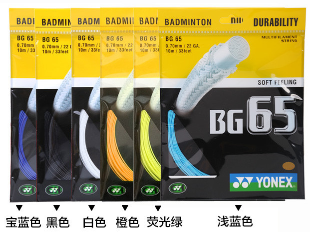 基本所有羽毛球手都知道的线。这线唯一的功能就是耐打!我和我朋友叫它(the undead),就是不死线。这线是属于比较全面的,因为各项功能都差不多,除了耐久度超高。BG65属于比较经济的线,因为不容易断,绝对适合新手或打不中甜圈的人。个人推荐磅数22~28。