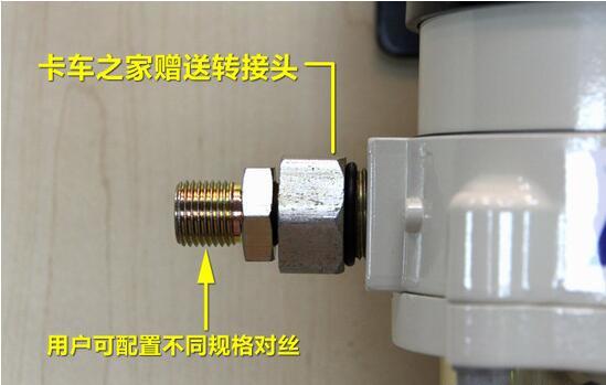 卡车之家定制专用转接头(方便安装各种对丝,适用于各种油管尺寸),并且标注好了进出油口,方便卡友安装。