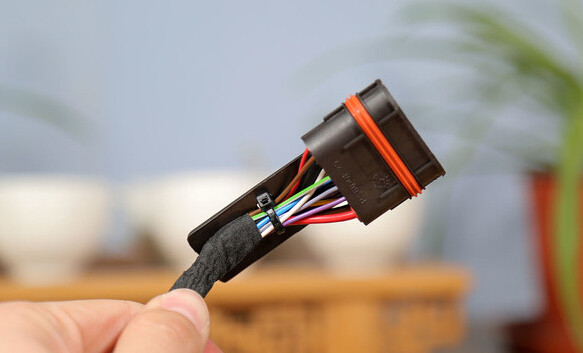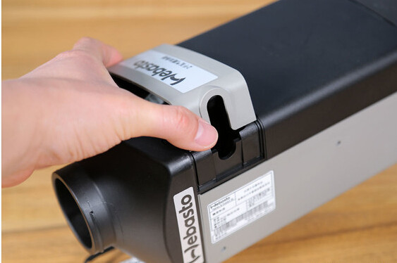 加热器主机的外壳主要有两个端盖、一分为二的两个上盖和底壳这5个部分组成,我们翻遍整个主机的外壳,并没有发现用来固定的螺丝,从外表来看只能看到是由两个端盖处的卡扣来固定的。另外与以往拆解的加热器不同的是,连接油泵的电线是从进气口进入主机内部的。