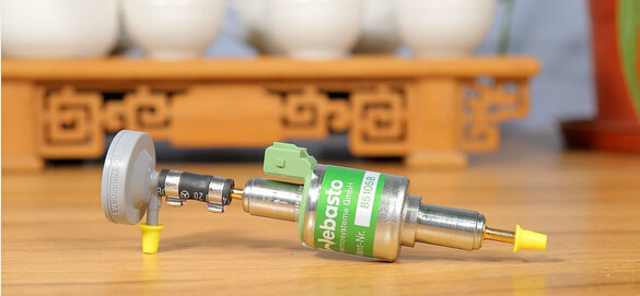 伟博思通Air Top 2000 ST驻车加热器主机部分的拆解就到这里了,再来看看附件都有哪些可圈可点的地方。该加热器标配了一个电子脉冲油泵,采用间歇性工作方式,直接从主油箱取油,比怠速运行发动机更省油。整机工作时的峰值功率为24瓦,仅相当于一个尾灯灯泡的电量。