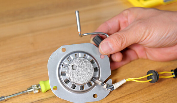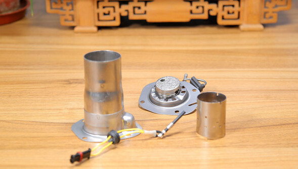 拆掉螺丝之后,我们发现燃烧室有内芯和外芯两部分组成,内芯上面设置了许多圆形的小孔,并且在燃烧头处布满了非常细的钢丝,目的是为了增加柴油蒸汽和空气的接触,有助于柴油的快速燃烧。被加热点火塞被烧红的钢丝,能不间断的提供燃油燃烧所需的温度,利于充分燃烧。
