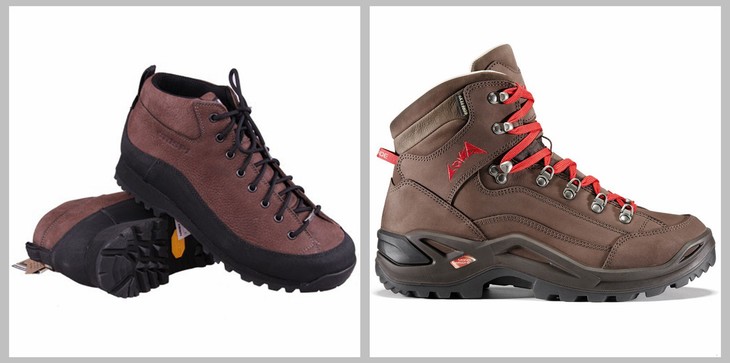 Trekking:重型徒步鞋,这种鞋鞋底中层较有弹性,能缓解背包的重量,大底坚硬,能在地形环境比较原始的山区长途行走,并且能使用全绑式冰爪。鞋面防水并且要有一定透气性适合长时间穿着,鞋帮一般较高,可以很好的保护脚踝。有些品牌会细分出Backpacking(短程重装徒步鞋)的系列,一般是适应更为险峻的地形以及背负更重的器材的款式。