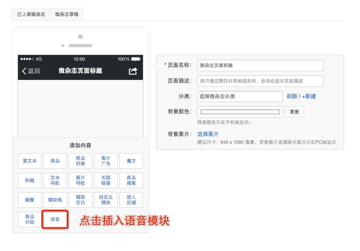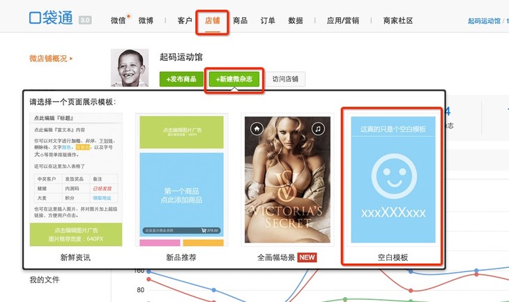 1. 第一步,创建一个微杂志页面。进入“店铺”栏目,点击“新建微杂志”