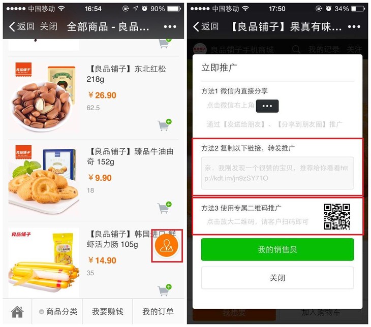 良品铺子销售员☺专属推广链接和二维码
