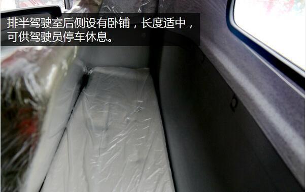 排半的驾驶室后侧设有卧铺,长度适中,可供驾驶员停车休息。内饰整体配置不低,空间运用也不错,做工还可以更细,可以多从90后的审美角度去设计。