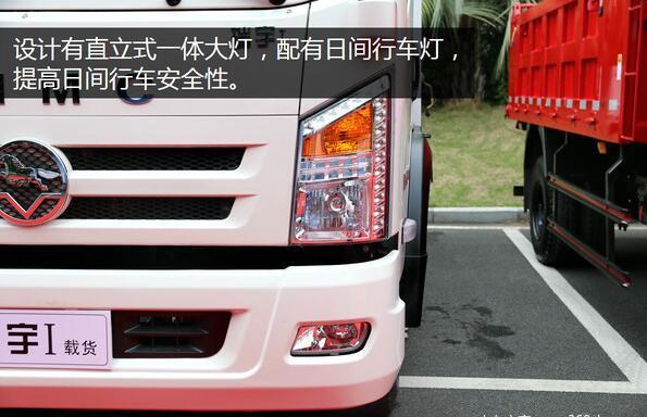 从以上尺寸就可以知道这是一款排半车型。瑞宇的驾驶室采用直立A柱设计,驾驶室空间扩大,驾驶员视野更广。前脸借鉴了日式轻卡的造型,设计有直立式一体大灯,配有日间行车灯,对于轻卡来说已逐渐在普及过程中。