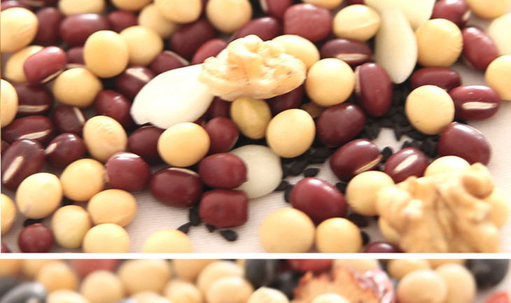 核桃杏仁豆浆:黄豆、红豆、黑芝麻、核桃、杏仁