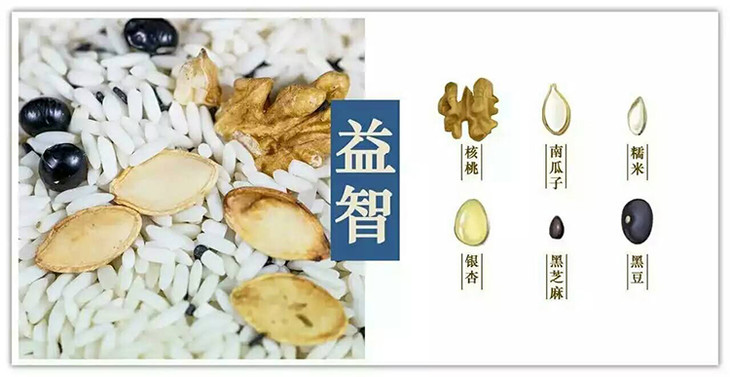 【配料】糯米、黑豆、核桃、黑芝麻、银杏、南瓜籽,