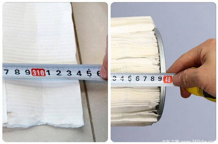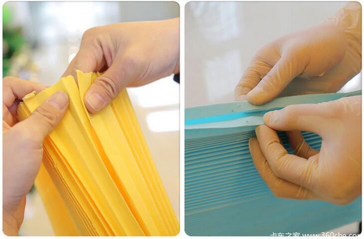 左边:永升主芯滤纸折叠拼接/右边:炫航主芯滤纸折叠拼接