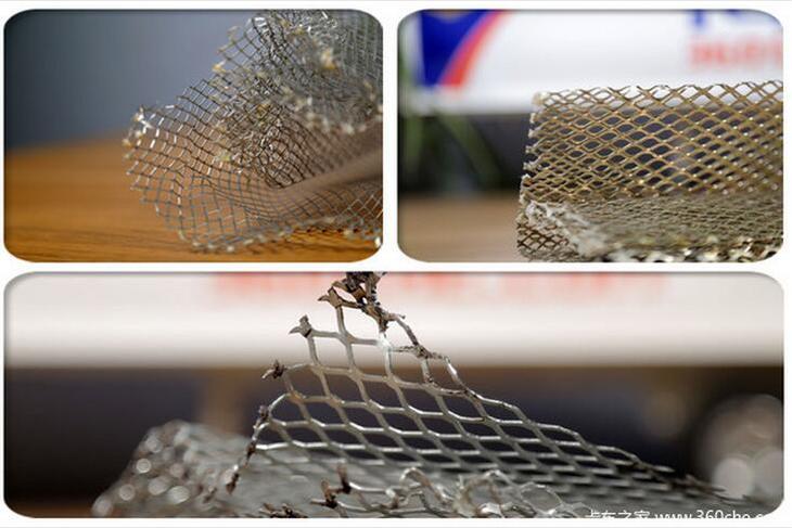 在拆解的时候我们能明显感受到,炫航和永升的金属网相对细一些,用手轻轻一按就发生了变形,并且永升的金属网在外力的作用下还很容易断裂,而弗列加则几乎不能发生变形,除了得益于其做工用料充足外,粘结剂的强度也有极大的影响。