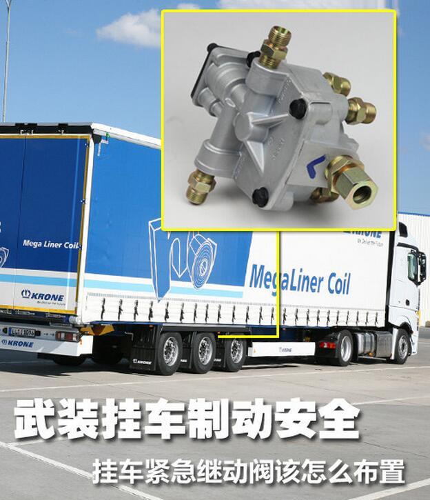 1、配置紧急继动阀的挂车,可以大大缩短挂车制动滞后时间,即加快挂车制动反应速度。