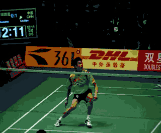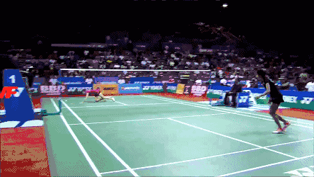 站位稍靠前,判断对方要重复打网前球时,利用双脚蹬地,迅速跳向网前,采用扑球技术击球。要注意防止因前冲力过大而触网或过中线犯规。