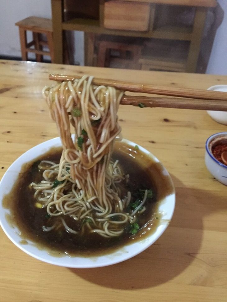 一到菜市场上各种小贩都热情的和婆婆打招呼,几乎打了招呼的婆婆都愿意去光顾,于是菜篮很快装满了。这时会看到一家门脸较低的瓦房。婆婆把菜篮往店里一放,大声爽朗的喊到,“哈娃,来两碗牛肉面!”头戴白帽的店家哈娃,把毛巾一搭道“哦,向婆婆哦,好例~~~你先坐到起哈。”婆婆说,“天天来吃,你把牛肉多放点嘛。”哈娃说,“你放心嘛!”这个时候,婆婆会进到他们厨房旁边亲眼盯着他们放臊子,果然是汁多肉多。婆婆把两碗热气腾腾的面端上桌,每碗放上几滴油辣椒,搅拌好,香气扑鼻。我挥舞着筷子吃的满头大汗,婆婆不容我喘息,已经向柜台喊到,“再来两碗!!”想来我的大胃也是那个时候养成的吧。对我的童年来说,去老市=吃牛肉面。时光如流水般过去,一天天吃着牛肉面,看着哈娃慢慢成了老爷爷,他的子孙继续着牛肉面的生意,他们家盖起了楼房扩充了店面。再后来,再回到家乡,这家店在老市上也慢慢消失了,婆婆也去了另一个世界,童年也消失了……只有记忆依然温暖。