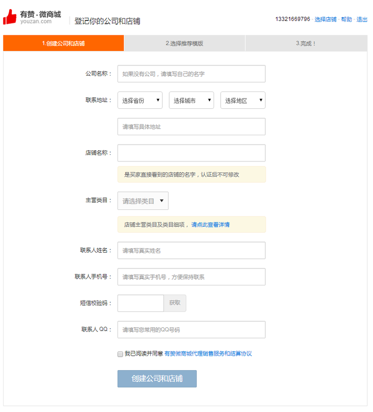 注册好账号之后,创建公司并且创建店铺,填写好公司的信息以及店铺的信息。