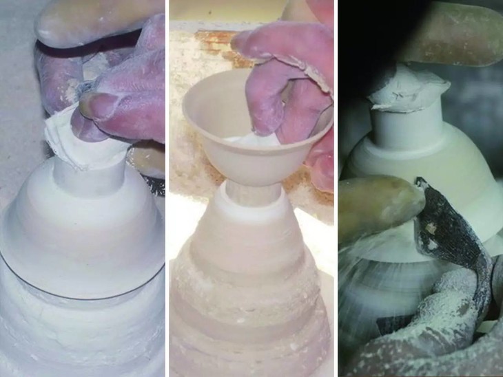 景德镇传统圆器做坯,即是依据最终的器型作出大致相应的坯体,以供后期印坯时使用。