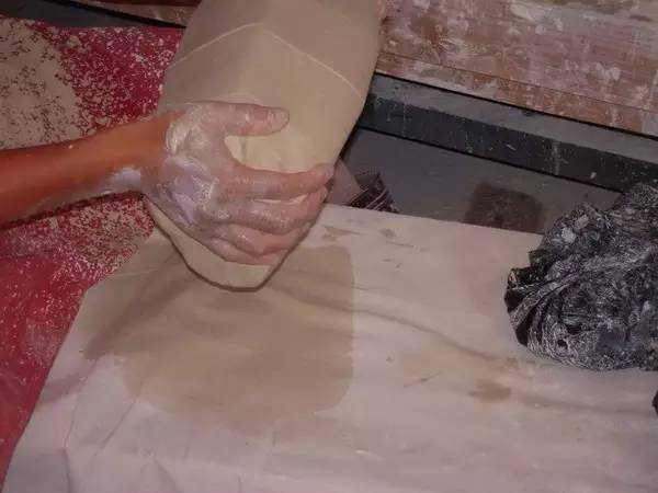 揉泥,目的在于排空泥料中的气泡,使得泥料进一步紧致。缺少这一道工序,则容易出现坯体中含有气泡,坯体干燥烧制时容易破裂变形。