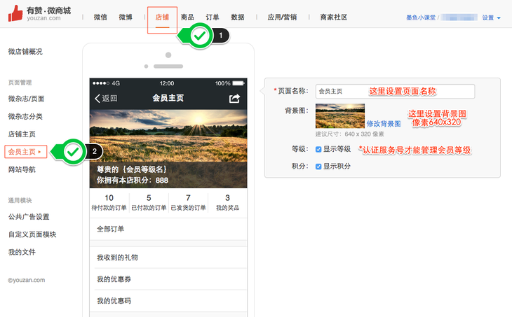 1 找到会员中心:店铺-会员主页