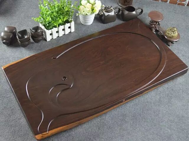 木质茶盘造型简约、典雅、平滑、纹理细腻,一般能看到木材真正的纹理,体现其清新自然的材质。且木质茶盘可精雕细琢,表现手法多样,造型精美。目前的木茶盘市场中,如果按照材质区分,可以将木茶盘分为较高品质的黑檀、绿檀、红酸枝、大叶紫檀木等。普通木茶盘包括鸡翅木,非洲花梨木、柯木和柏木等。木质茶盘是生活中最为常见的茶盘,经济实用。