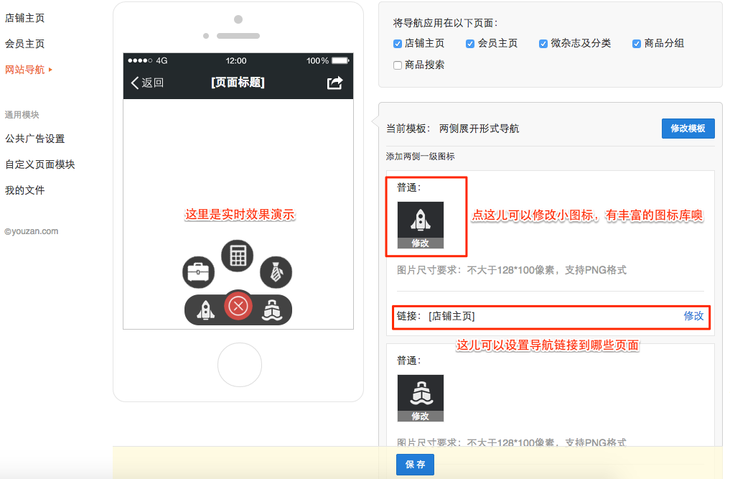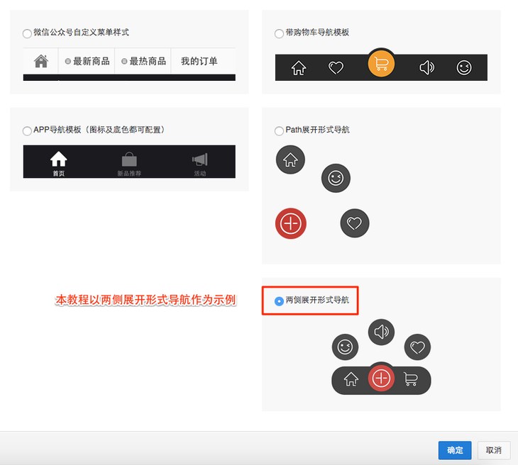 3 选择导航模版样式,点击修改模版