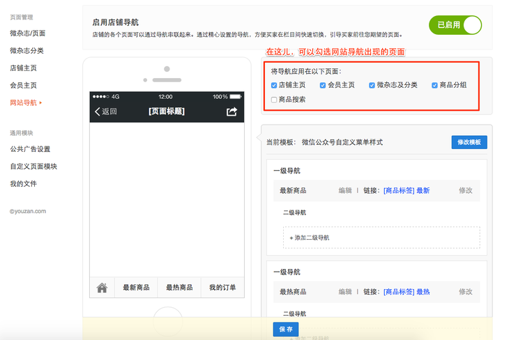 2 选择网站导航的出现页面
