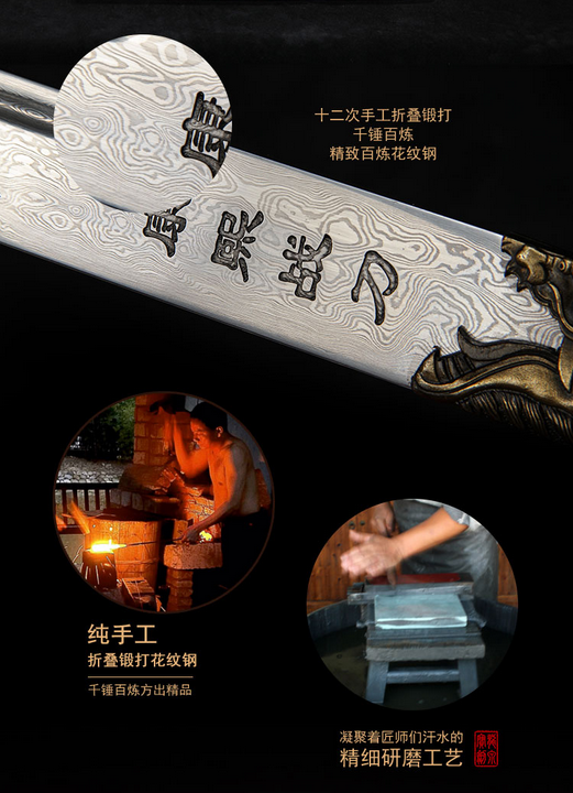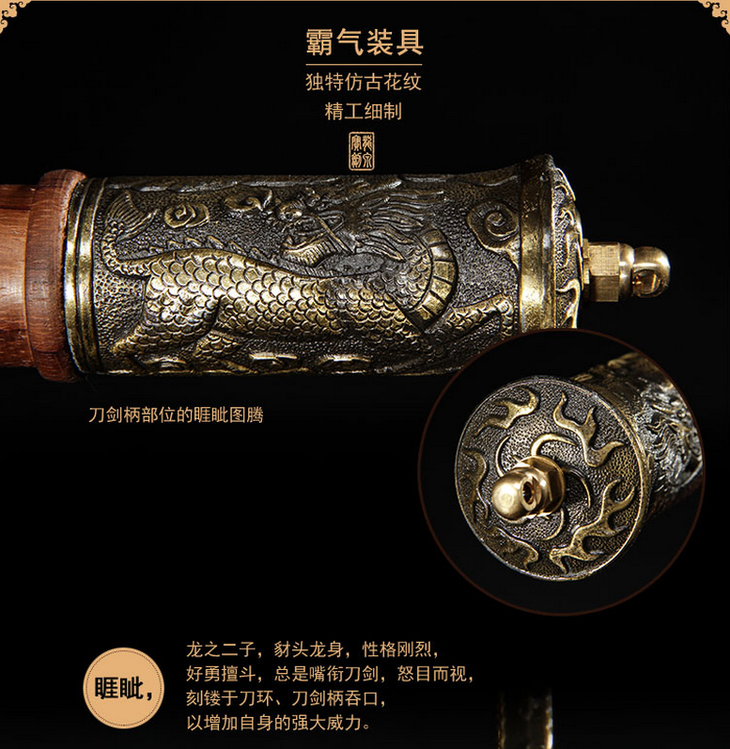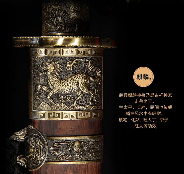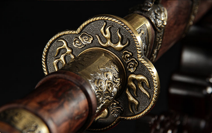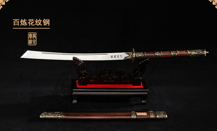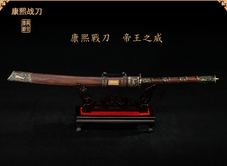 此刀设计把皇室佩刀的威仪和实战砍刀的功能完美的结合起来,制作规范,花纹钢精良,双手持握,破击力强。此刀为清圣祖玄烨之御用战刀,是其赫赫武功的有力见证。康熙三十五年(公元1696年),康熙帝西征准噶尔部噶尔丹凯旋,回京时路经归化城,时逢崇福寺(蒙语“巴噶召”即小召)建成,将此宝刀一并随身之物,留作纪念。