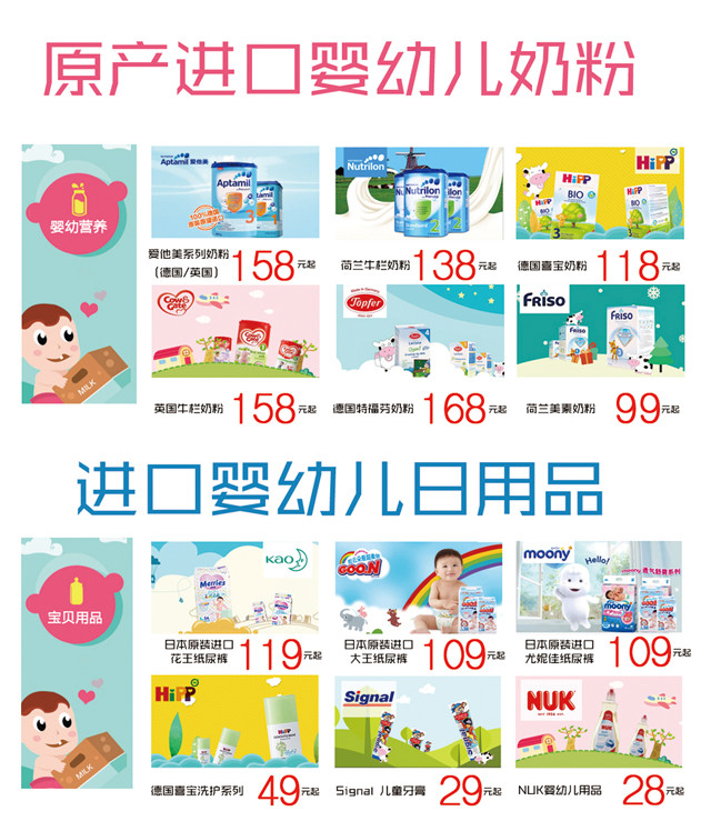 在线订购,统统免税!意味着从此以后,奶粉、奶瓶、纸尿裤等等等,只需市场价的5-6折!